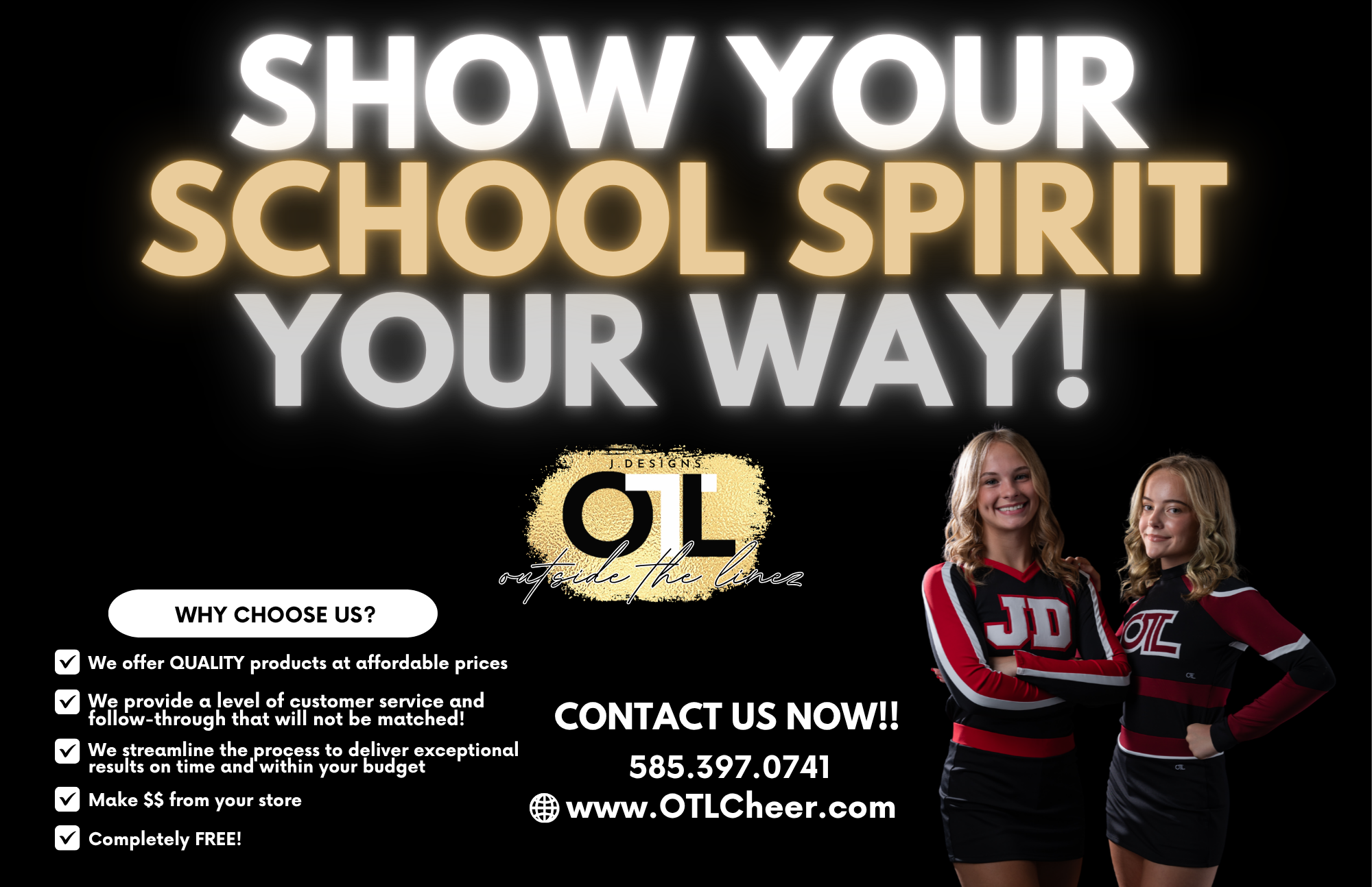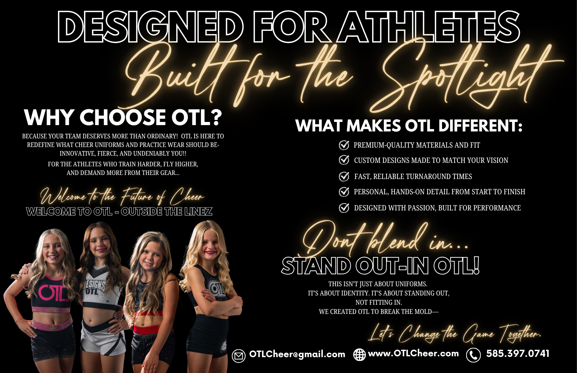 LEVEL UP YOUR TEAM’S GAME WITH AN OTL CUSTOM CHEERLEADING UNIFORM!
